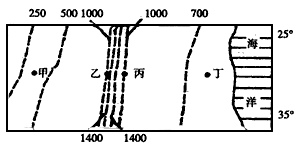 1、单选题 读“某地年等降雨量线(单位:毫米)图”回答1—3题。
