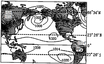 5、单选题 读“世界部分地区等压线分布图(单位:百帕)”,回答下列问题。