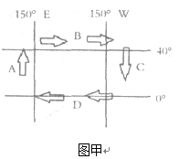 小题2:根据材料平流雾的形成条件,读图甲,A、B都是暖流,流经区的水温低,易形成平流雾,选项A、B错。C是寒流,水温比流经海区水温低,也易形成平流雾,C错。D是暖流,但流经区在赤道附近,温度高,水温差异小,最不易形成平流雾,D对。
