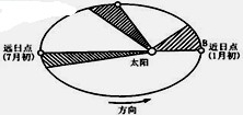 本题解析:1.本题考查地球在公转轨道的位置。北半球夏至日(6月22日前后)太阳直射北回归线,北半球昼长夜短,北极圈及其以北出现极昼现象。当地球运动到远日点7月初时,接近夏至日A点。所以本题选择A选项。