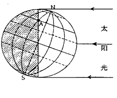1、综合题 读“地球日照示意图”(阴影表示黑夜,非阴影表示白天),回答下列问题。(共14分)