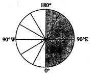 2、单选题 该图外圆纬度数为n,圆内为某日极昼分布的范围,中心为极点,此时非阴影部分日期为m。据此回答问题。