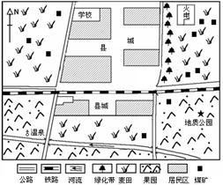 材料一 下图为我国华北地区某县城驻地及周边部分辖区示意图,经勘探发现图示区域有储量丰富的大煤田。