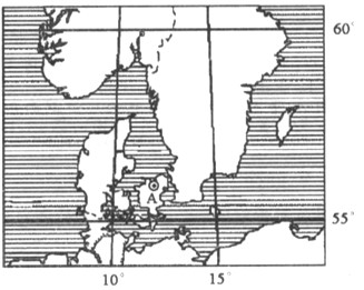 4、综合题 2009年12月7~18日在哥本哈根(图中A域)召开《联合国汽候变化框架公约》缔约方第15次会议,即世界气候变化大会,经过激烈的争论与协商,最终达成了《哥本哈根协议》。读图回答有关问题。