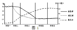 小题1:A项图示阶段一的人口增长模式为高—高—低模式;错误;B项阶段二的人口自然增长率最大,故人口增长最快;正确;C项生产力发展水平最高的阶段为阶段五;错误;D项人口自然增长率最低为阶段五,出现人口负增长;错误;