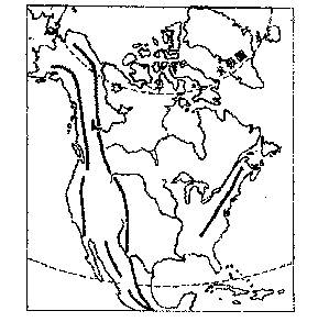 (1)简述北美的气候特征。并根据图中位置和地形分布分析其形成原因。(14分)