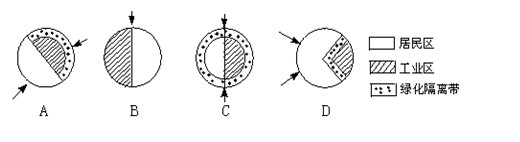 4、单选题 只考虑盛行风向,图中工业区最佳布局是