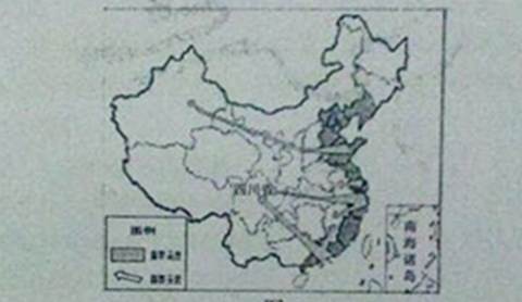 1、单选题 读“中国服装产业向中、西部转移示意图”,完成下列各题。