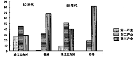 参考答案:(1)原因:香港经济以工业和第三产业为主,经济发达,劳动力、土地等成本较高,劳动密集型企业失去优势(2分);80年代,珠三角经济较落后,劳动力、土地成本较低,因而香港大量劳动密集型企业北移,珠三角成为产品的加工基地,为香港输出产品,形成“前店后厂”的格局。(2分)