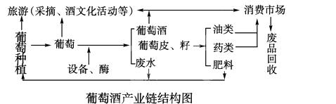 小题1:根据图中信息可知,葡萄酿酒需要优质的原料;产品销售需要广阔的市场。葡萄酒用新鲜葡萄或葡萄汁酿造而成反映原料的影响;我国葡萄酒产量及消费量快速增长,反映市场对生产的影响。