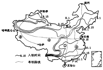 【小题2】影响路线③的入秋时间序列的原因是( )