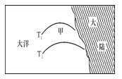 1、单选题 下图为“某沿海地区甲处海域等温线分布示意图”。读图,完成下列各题。