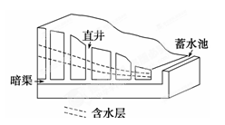 3、单选题 《史记》中记载的“井渠”,就是今天我们所说的坎儿井。坎儿井是开发利用地下水的一种古老的水平集水建筑物,多建于山麓、冲积扇地带。现存的坎儿井,多为清代以来陆续修建的,如今仍浇灌着大片良田。读“坎儿井示意图”,回答下列各题。