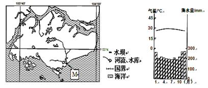 (2)图3为图1中M水坝的景观。水坝能阻挡海水涌入,并通过其闸门调控河流入海流量。说明建坝前后坝内水域水的咸淡变化及其原因。(6分)