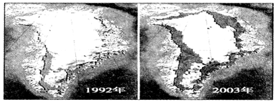【小题1】1992年至2003年格陵兰冰原面积不断缩小,这反映了