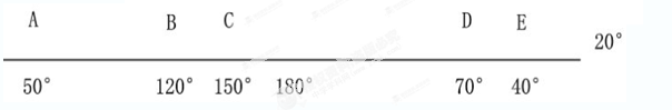 2、单选题 读下图,横线为20°纬线,A处以东为海洋;B、C之间和D、E之间为陆地,其余为海洋。据此回答下面各小题。