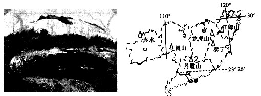 材料二:下图为丹霞地貌和“中国丹霞”六个风景区所在区域图。