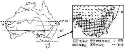 3、综合题 读澳大利亚“年降水量分布图”和“局部农业类型分布图”,回答下列问题。