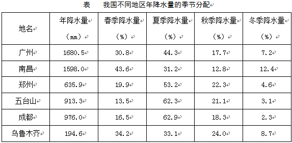 (3)表中,夏季降水量最少的地点是?,原因是?。
