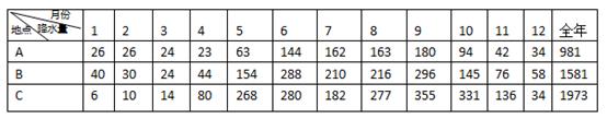 材料一 下图是中美洲局部地区示意图;下表为图中A、B、C三地的降水资料(降水量:mm)。