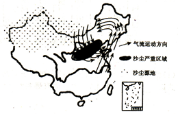 1、综合题 [自然灾害](10分)2010年3月19日,一场沙尘暴席卷了华北地区,图为沙尘暴发生的天气示意图及沙尘暴生消图
