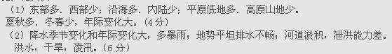 参考答案:(1)我国雨涝区分布大体是从东南向西北减少。原因:我国的降水量是从东南沿海向西北内陆减少。我