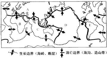 (2)南美安第斯山脉由_________两大板块碰撞而成(填字母)。