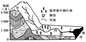 1.图中甲山为旅游名山,其海拔为1474米,有关该山地质构造及地貌的说法正确的是2.甲山与乙地比较说法正确的是