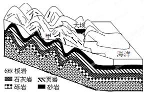 2、单选题  右图为“某地区地质、地貌示意图”。读图完成题。