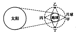 小题2:图是“日、地、月运动示意图”。甲、乙、丙、丁表示月球绕地球运动的位置。当钱塘江出现大潮时,月球位于