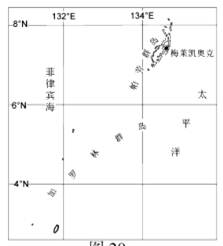 3、综合题 [海洋地理]帕劳是美丽的西太平洋岛国,位于太平洋板块与菲律宾板块交界处,由一个大堡礁和许多小岛礁构成。下图是帕劳的地理位置图。读图回答下列问题。(10分)