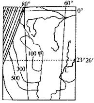 1、单选题 图中等值线是海洋等降水量线,阴影为黑夜。读图完成1~3题。