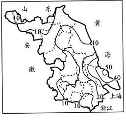 1951年—2007年江苏省龙卷风发生次数分布图。