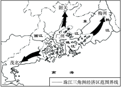 材料一:区域之间产业转移,成为经济发展的一大特色。右图表示广东珠江三角洲地区部分工业的“二次转移”。