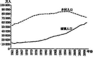 1、单选题 图示意某国城镇人口和乡村人口的变化。读图回答问题。