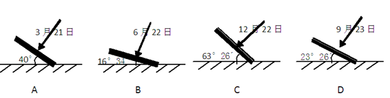 1、单选题 北回归线某地要安置一台太阳能热水器,为获得更多的太阳光热,提高利用效率,需根据太阳高度的变化,随季节调整倾角,那么下列热水器安置方式最合理的是: (? )