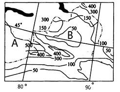 1、综合题 (10分)读我国华北地区等高线地形图(单位:米)和西北局部地区年降水量(单位:毫米)图,其中A河河谷被称为我国的“西域湿岛”。完成下列问题。