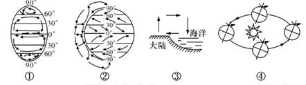 3、单选题 下图中四幅图分别表示世界洋流模式图、三圈环流模式图、海陆间水循环示意图和地球公转运动示意图,正确的是?
