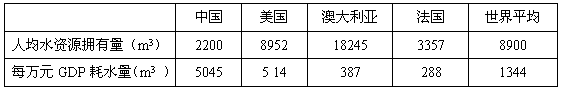1、单选题 下表为“部分国家人均水资源拥有量及每万元GDP耗水量表”。答1—3题。