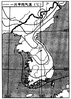 2、单选题 下图示意为某半岛一月等温线,读图完成1—3题。