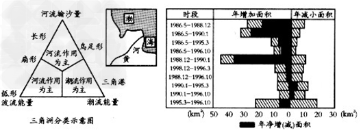 2.1986~1996这些年间,黄河三角洲陆地变化特点、原因及区域特点是?