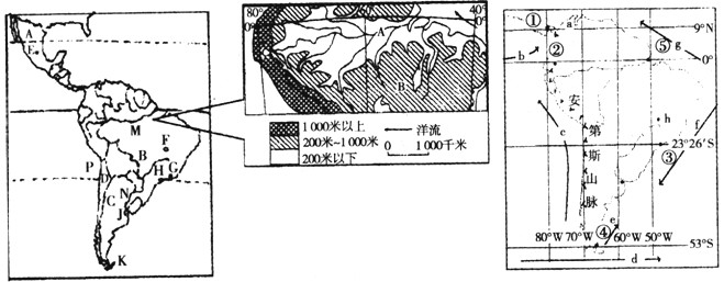 5、综合题 南美洲有着世界最大的平原和高原,读左图、中图、右图后回答问题。