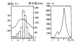 4、单选题 读“我国某河流水文站的气候直方图”及“河流流量过程线图”,完成20、21问题。