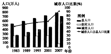 1、单选题 下图是我国总人口及城乡人口变化情况,读图回答下列各题。