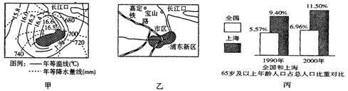 3、综合题 2010年的世博会在上海举办,上海成了全球关注的焦点。读“甲、乙、丙三幅有关上海市的图”,根据图中提供的信息回答下列问题:(15分)