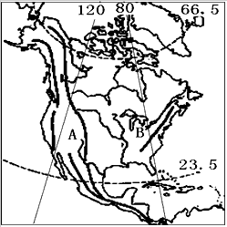 (1)图示地区是_______(东或西)半球,A附近山脉属于____________山系。