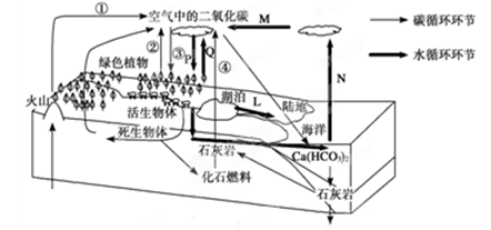 3、单选题 下图为“自然界碳、水物质循环示意图”, 读图完成以下问题。