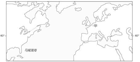 小题1:从图中马尾藻海和欧洲的位置可知,马尾藻海位于大西洋西岸,欧洲位于大西洋的东岸,根据世界表层洋流分布图知:必须经过北大西洋暖流才能从北美东海岸到达欧洲西海岸。选项B正确。