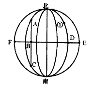 5、综合题 下图为“地球某日太阳光照示意图”,图中阴影部分为黑夜,其他地区为白昼,读图回答下列问题。
