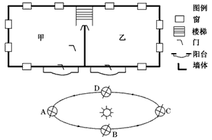 1、综合题 下图是某房地产公司在聊城市(约36°N)开发的一梯两户式多层商品房平面示意图和地球公转示意图,读图回答下列问题。